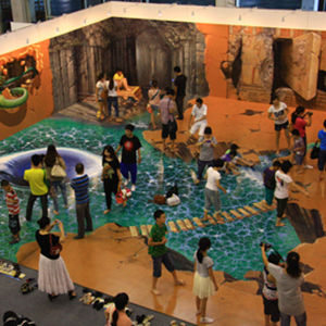 地面互動投影系統(tǒng)采用懸掛在頂部的投影設(shè)備把影像效果投射到地面,當參訪者走至投影區(qū)域時,通過系統(tǒng)識別,參訪者可以直接使用雙腳或動作與投影幕上的虛擬場景進行交互,各種 ……