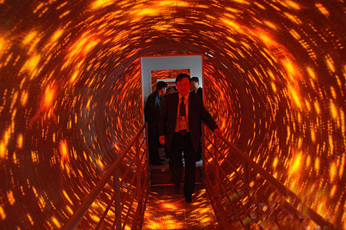 當人沿通道橋步入隧道內(nèi),眼睛盯著旋轉(zhuǎn)的隧道內(nèi)容,人的行動是受大腦指揮的,而大腦將接受下列信息才能發(fā)出指令:前庭覺將感受人體平衡信息(垂直或傾斜);視覺將感受人處地 ……